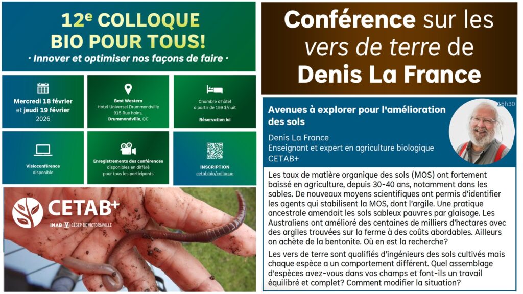 Après une quinzaine d’années d’apprentissage comme agriculteur et enseignant pigiste, incluant deux ans d’étude et de travail en Europe où le bio était plus avancé, après 10 ans dans le premier éco-village au Québec, Les Plateaux de l’Anse-St-Jean, j’ai été embauché par le Cégep de Victoriaville pour mettre en place un programme de formation pour des agriculteurs. Après une carrière comprenant aussi la mise en place d’une ferme-école pour les étudiants du programme régulier, et l’organisation de conférences et de voyages d’étude mémorables pour agriculteurs et intervenants, j’ai co-fondé le Centre d’expertise et de transfert en agriculture biologique et de proximité (CETAB+) où je continue d’être actif à un rythme modéré.