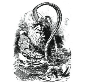 La caricature de Darwin provient de la revue satirique Punch 1881 où on riait de son intérêt pour les vers de terre.