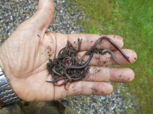 Dans ce projet de science citoyenne, on vise à identifier les espèces présentes sur les fermes et dans les jardins, et à voir si la combinaison d’espèces offre un potentiel de complémentarité assurant un bon fonctionnement des sols. Et je conclus que la diversité des 7 espèces est équilibrée : 4 endogés, un épi-endogé, un épigé, 1 anécique. Évidemment les vers sont répartis en îlots et ne sont pas uniformes partout sur une ferme.