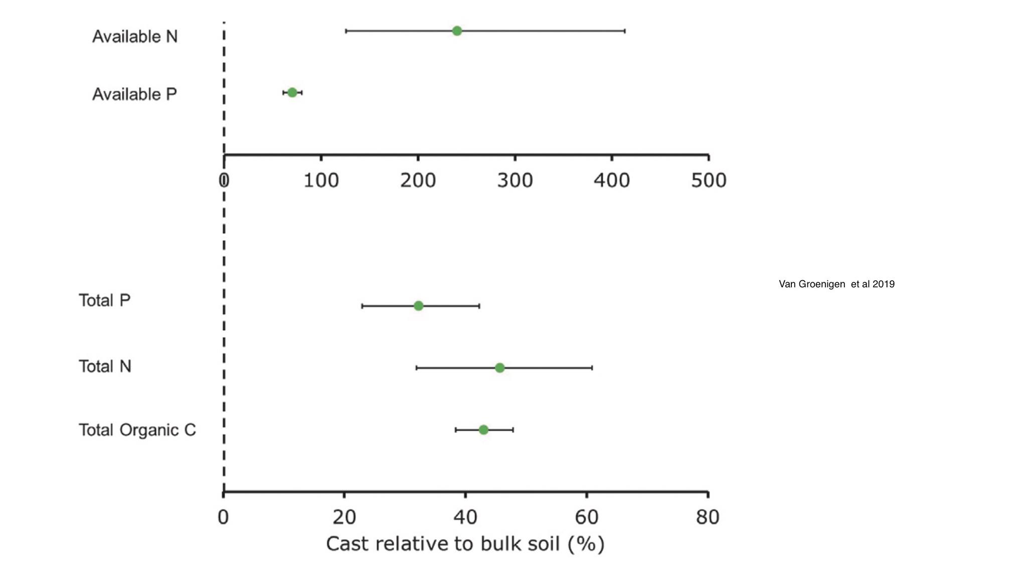 30 à 40 % du N des plantes provenant des vers semble plausible. Bohlen, Parmelee et al 2004