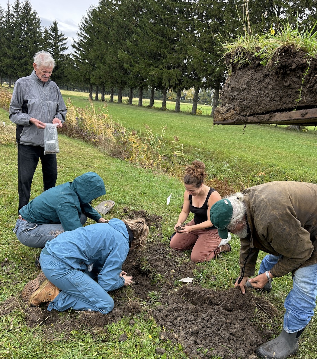 En après-midi, une collecte a eu lieu à la Ferme expérimentale d’AAC à l’Acadie, au moyen d’une fourche à palettes sur un tracteur. Cette méthode de creusage rapide permet d’observer facilement un profil de sol. On a fouillé le sol ameubli et le profil sur la fourche. (V photo 3) Afin d’activer les vers en cette période automnale très sèche, un emplacement avait été arrosé la veille. Parmi les dizaines de spécimens prélevés, on a trouvé Aporrectodea longa, une espèce moins commune au Québec.