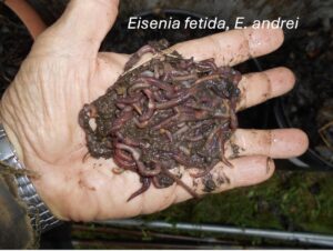 Il y a 3 ans, j’ai introduit E. andrei qui lui ressemble beaucoup. Et l’an dernier j’ai introduit, en octobre, E. hortensis; plus gros et plus foncés que les deux précédents, mais tigrés aussi, ces épigés se reproduisent plus lentement. Je ne crois pas en avoir vu cette année. Ceux que j’ai vus étaient soit E. fetida ou E. andrei.