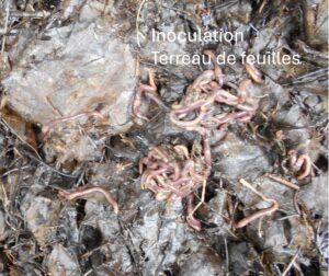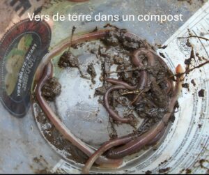 J’ai profité du dernier samedi de juin pluvieux pour examiner mon compost domestique. Il est situé à l’entrée du jardin de légumes. Je voulais transférer des vers dans un terreau de feuilles débuté au printemps (avec un ajout de farine de plume azotée) pour le transformer en vermicompost. En français on parle souvent de lombricompost et de lombriculture. Les épigés sont des vers qui vivent dans la litière de surface et rentrent très peu dans le sol. Ils mangent très peu de terre. Dans les composts, on voit beaucoup d’Eisenia fetida qui survit à l’hiver, surtout par ses cocons.