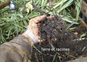 Au printemps, je fais pas mal d’entretien au jardin, notamment le sarclage de mauvaises herbes vivaces, avec des racines, l’éclaircissage de plantes vivaces expansives comme des fougères envahissantes que j’arrache avec des racines fibreuses dans une plate-bande de fleurs, etc. À plusieurs endroits je contrôle des graminées vivaces envahissantes que je mets au compost avec une grosse motte de terre pleine de racines. Une fois décomposés les végétaux laissent beaucoup de terre dans le compost.